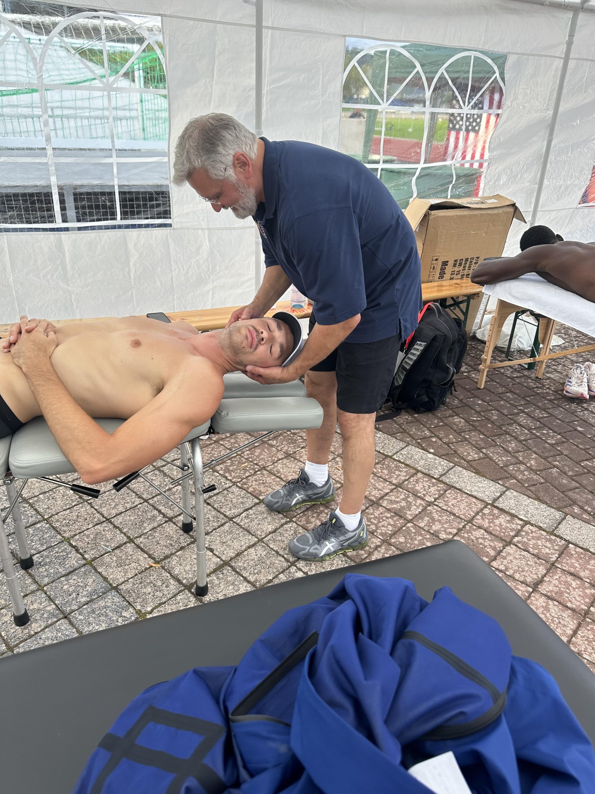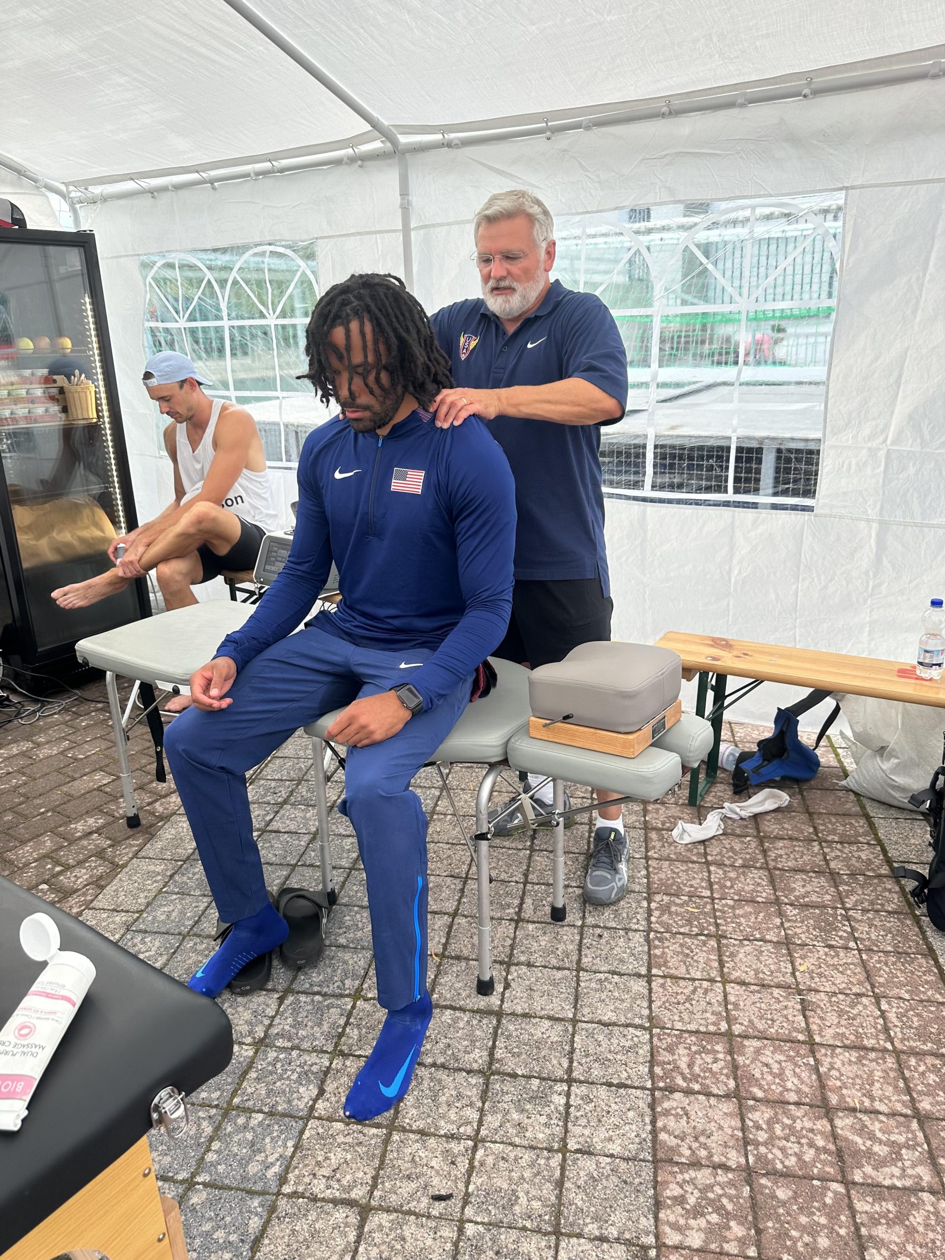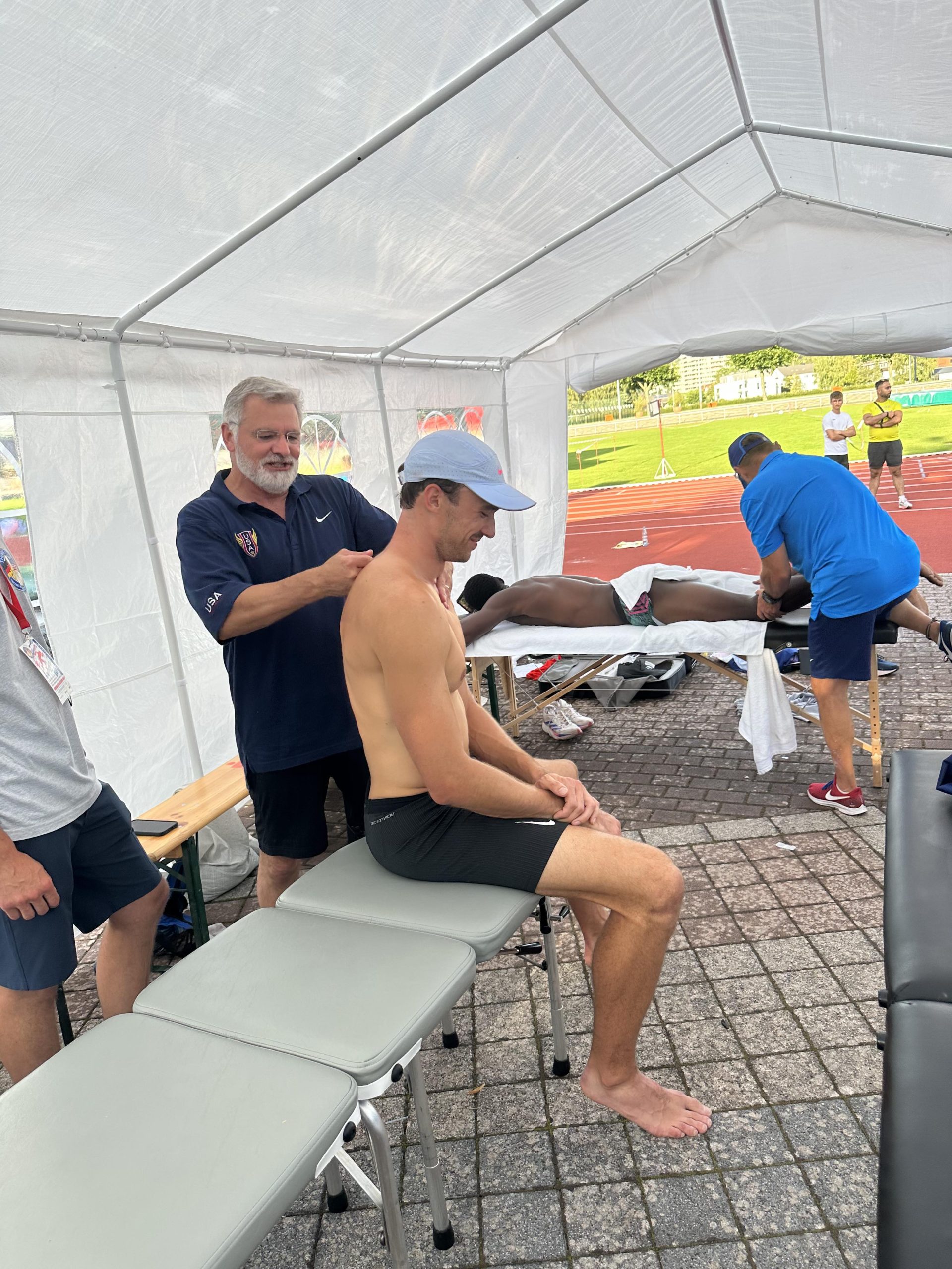 The Draegers did not expect their role at the competition in Germany to be so pronounced. However, due to the many years Dr. Curt has spent working with the U.S. Track and Field team and his connections with the coaches and administration, the IPS team was stationed in the official medical tent. There, they treated nearly the entire team, including the winner of the heptathlon, Michelle Atherley, runner-up Erin Marsh, and third-place finisher Devon Williams. They also extended their expertise to German athletes and even Lindon Victor from Grenada – a favorite to compete for his country in the 2024 Summer Games!